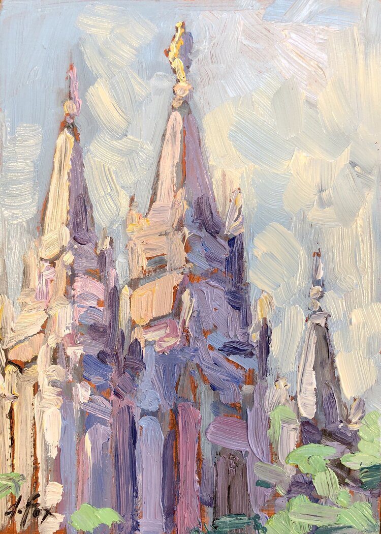 Salt Lake Temple in Pinks, by artist Deb Fox